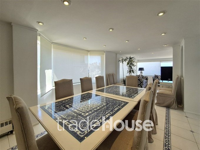 El segundo departamento, ofrece tres dormitorios, siendo el principal en suite con vista al mar. Cuenta con dos dormitorios secundarios, uno de ellos también en suite, y un tercer baño. La cocina, equipada con cubierta de granito, tiene logia, dormitorio de servicio con baño y patio. El living-comedor conecta con una espaciosa terraza con vista al mar y quincho. Sus terminaciones son de alta calidad, pisos de madera, ventanales termopanel, mármol, closets y puertas de cedro.