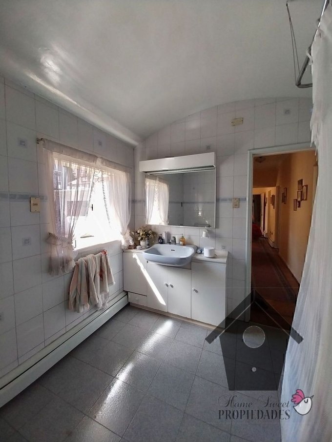 La casa solida de dos pisos en excelente estado de mantenimiento y conservación, construida el año 1950, en albañilería de ladrillo, tiene pisos de madera sobre vigas también de madera. Living con chimenea, Escalera de concreto, Protecciones en las ventanas, Agua caliente mixta con calefón y termo eléctrico. Cocina amoblada. Acceso principal pavimentado con jardineras. Patio con baldosa.