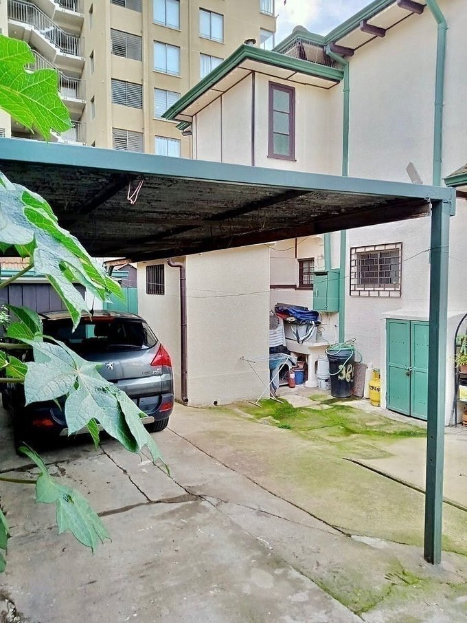 Exterior: entrada para tres autos más un garaje techada para un auto y bodega. La casa cuenta con entrada por dos calles.