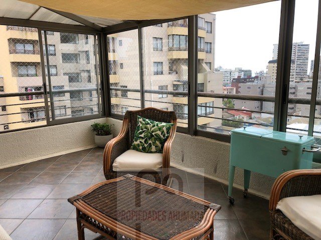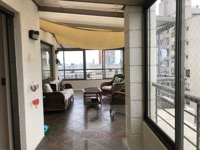 Se vende estupendo departamento ubicado en piso 11, correspondiente al último piso del edificio, nor-poniente, sector residencial, tranquilo, a pasos de comercio, movilización, centros comerciales. Hall de distribución, living comedor con salida a amplia terraza techada, 3 dormitorios, principal en suite, 4 baños, sala de estar con posibilidad de 4° dormitorio, amplios closet , cocina encimera, equipada, logia de buen tamaño, lavadero, baños de servicio (4°baño), 1 estacionamiento, bodega, ascensor, piso flotante, calefacción con radiadores. Conserjería las 24 hrs. Gastos Comunes $280.000.- Propiedades Ahumada 976682000.