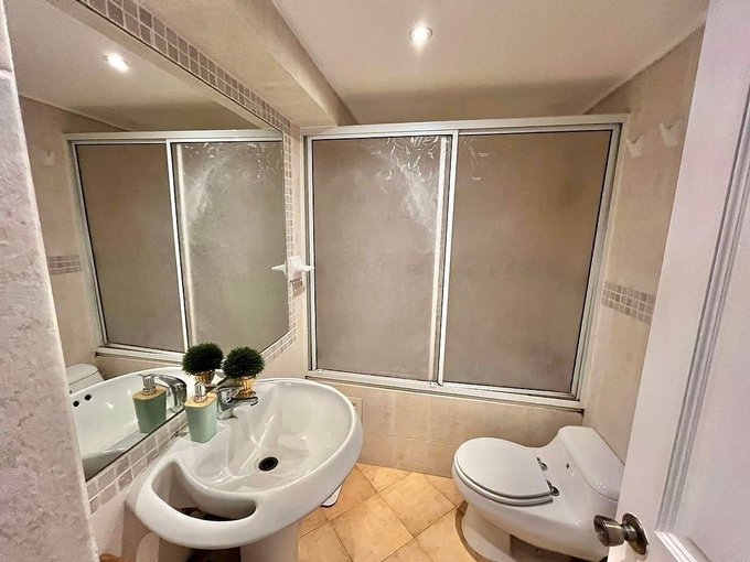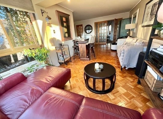 Parqué en living comedor, pasillo y dormitorios. Cerámica en baños y cocina. Malla de protección en ventanas. Baños con vanitorios, baño suite con ventana y jacuzzi. Mampara de acceso al sector de dormitorios. Cocina amoblada equipada con encimera, horno empotrado y campana extractora. Agua caliente con calefón.