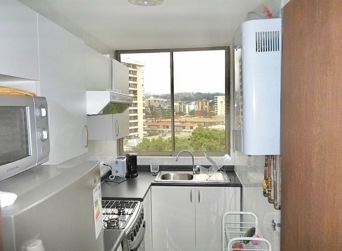 Departamento se encuentra próximo al borde costero, a pasos de Av. San Martín, con variedad de restoranes y comercio, además a pasos de una farmacia y un supermercado, desde el departamento es posible caminar al sector comercial de Los Ponientes, a la avenida Libertad y también al Mall Marina este último con todo tipo de comercio y salas de cine. Tiene buena conectividad en automóvil con fácil acceso a avenidas principales, Acceso a transporte público por Avenida Libertad a tres cuadras.