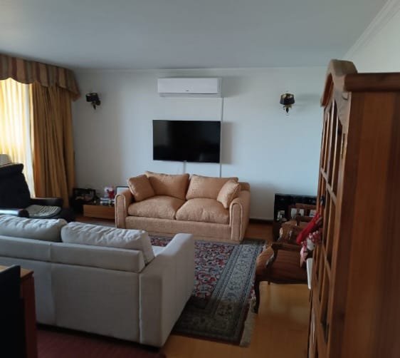 Departamento de 104 m2, 2 dormitorios y 2 baños, living comedor, hall de entrada, cocina con loggia, dormitorio principal con balcón y living comedor con terraza cerrada. A/A en comedor y en dormitorios. Dormitorio principal con termopanel. 1 estacionamiento y 1 bodega. Piso 11.