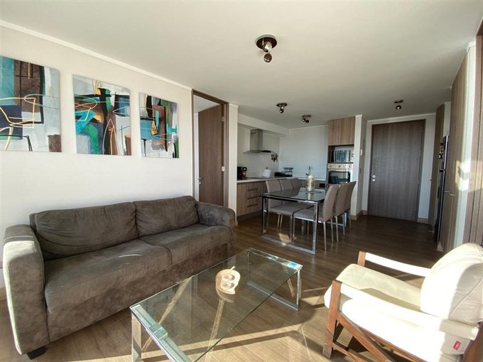 Además, destaca por su orientación poniente, lo que garantiza una iluminación cálida y una agradable vista hacia el entorno. El departamento se entrega totalmente amoblado, lo que facilita la mudanza y brinda la posibilidad de habitarlo de inmediato.