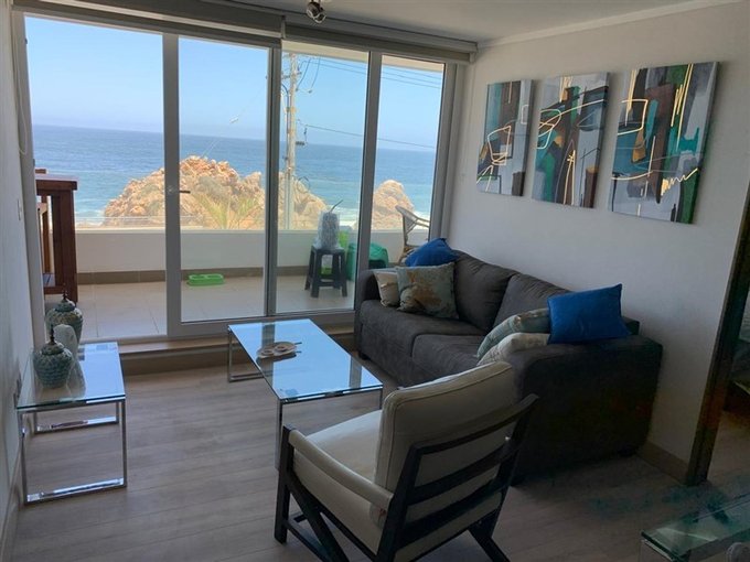 En Venta departamento en primera línea en Av. Borgoño 17720, en el codiciado sector de Reñaca. Este departamento cuenta con una excelente ubicación cercana a comercios, restaurantes y la playa Cochoa. Con una superficie total de 59,35 m2, de superficie útil, terraza de 15 m2. Está distribuido en 2 dormitorios y 2 baños, ofreciendo comodidad y privacidad para sus ocupantes.