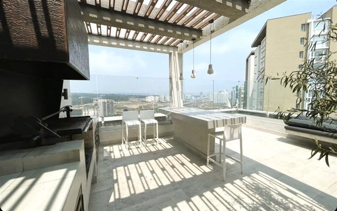Edificio Full equipado: Conserjeria 24 horas, áreas verdes, juegos para niños, piscina exterior, piscina temperada, quinchos en azotea, lavandería, gimnasio, sauna, estacionamiento de visitas.