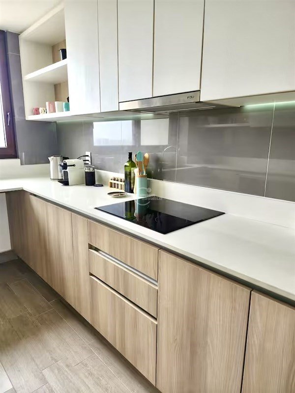 Hall distribución , living-comedor juntos con gran terraza y preciosa vista al mar , dos dormitorios uno en suite , dos baños completos, cocina moderna integrada equipada con encimera vitrocerámica , horno y campana eléctricos, cubierta granito.