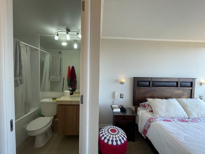 Las ventanas termo panel con cortinas roller optimizan la eficiencia energética y los pisos combinan cerámica y alfombra, aportando un confort estiloso. Disfruta del atardecer desde tu balcón privado .