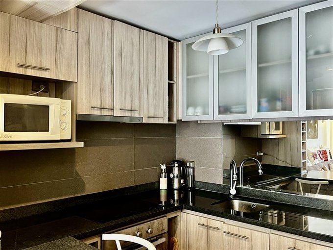 Cocina cubierta de granito, encimera, horno eléctrico, muebles de cocina empotrados y base muro a muro