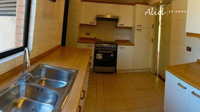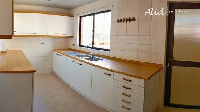 Cocina amplia con muebles y lavaplatos de dos tinas