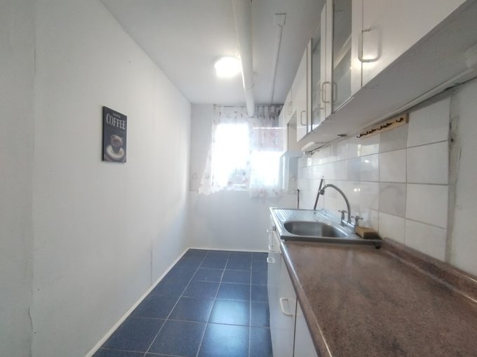 Cocina tradicional amoblada cuenta con logia incorporada.