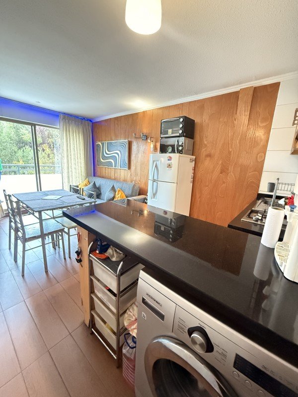 Cocina americana integrada y equipada con conexión a lavadora