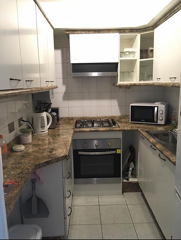 Cocina tradicional amoblada con encimera y horno