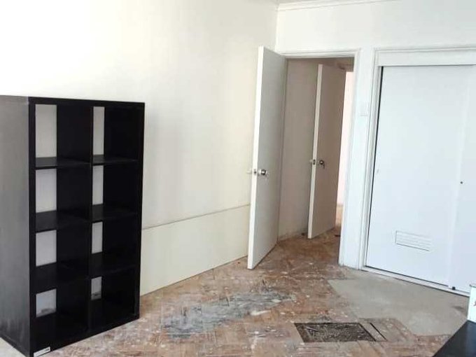 - Pisos de madera en todo el departamento en reparación.