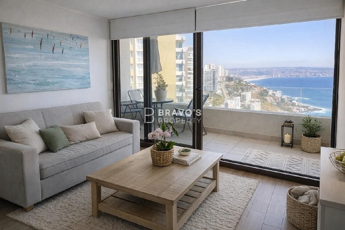 Hermoso departamento 2D2B con vista panorámica al mar en Costa Reñaca, ubicado en Av. Edmundo Eluchans. Estilo mariposa, ideal para vivir o invertir con alta plusvalía. Precio de venta: UF 6.990. Gastos comunes: $110.000 CLP. Apto para crédito.