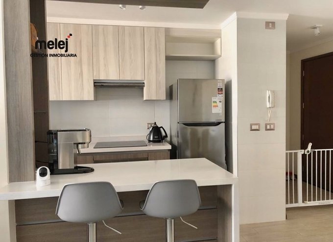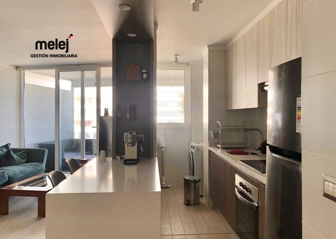 Cocina semiabierta con cubierta de granito y kit full eléctrico.