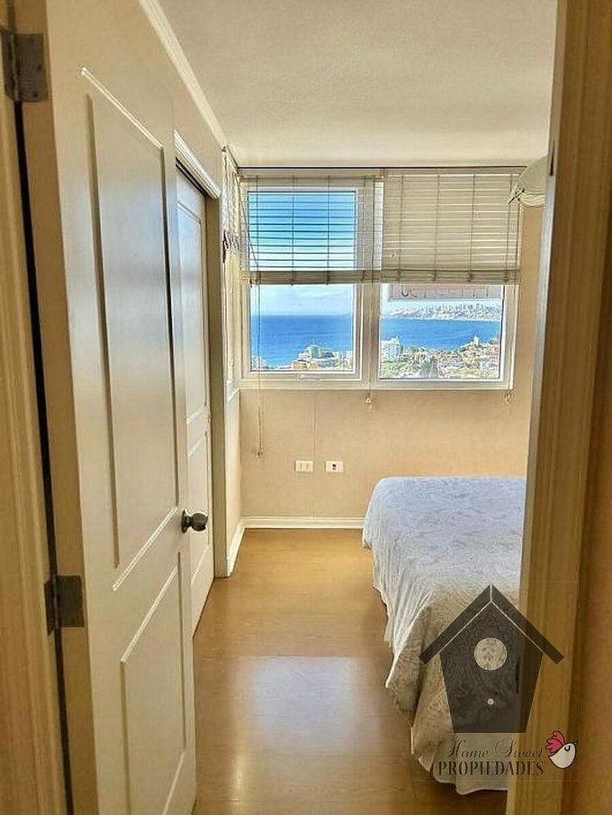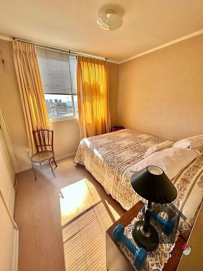 En calle Habana de Recreo, Viña del Mar a pasos del Estadio Español, con orientación Poniente muy soleado y con una espectacular vista de Recreo y la bahía de Valparaíso, se vende este funcional y cómodo departamento. Tiene living comedor con terraza, un dormitorio con baño en suite, dos dormitorios simples, un baño común, (tres dormitorios y dos baños) cocina tradicional con logia, además un estacionamiento techado y una bodega.