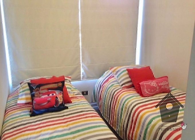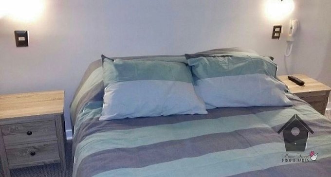 Piso flotante en Living comedor y pasillos, Dormitorios alfombrados. Piso cerámico en cocina terraza pasillo y baños. Mesa comedor con cubierta de vidrio, Baños con cubiertas de mármol. Dormitorios con closet. Baños con ventana. Cocina amoblada y equipada con horno eléctrico, encimera a gas, campana, refrigerador y microondas. Calefacción por radiadores y agua caliente por caldera mural independiente puesta en la terraza. Terraza con asadera a Gas. Departamento con alarma y citófono. Dormitorios con 5 camas (una cama de dos plazas y 4 camas de 1 plaza), mueble living y dos TV (living y dormitorio principal). Cortinas roller en todos los dormitorios.