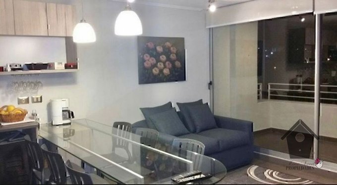 En Venta precioso departamento Amoblado, excelentes terminaciones y espectacular vista. Tiene living comedor con Cocina americana y terraza, tres dormitorios, dos baños, dormitorio principal con baño en suite, estacionamiento subterráneo y bodega.