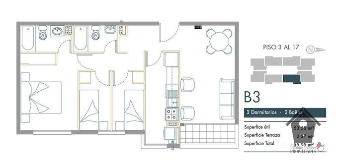 El departamento se encuentra en la segunda entrega del Condominio Vista Horizonte del año 2017, el edificio tiene 17 pisos con 8 departamentos por piso. Tiene piscina exterior, juegos infantiles, Gimnasio sala de uso múltiple, bicicletero, lavandería, Accesos controlados y conserje las 24 horas. EasyBroker ID: EB-VC2051