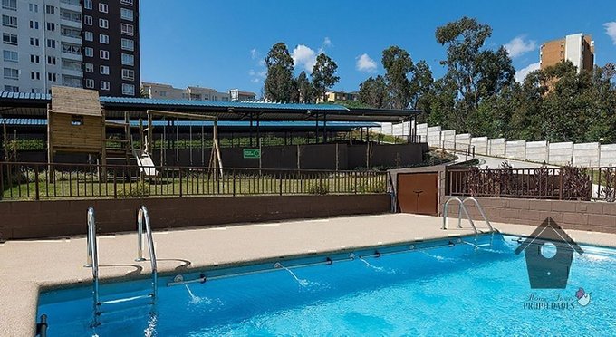 Departamento casi nuevo (entregado el 2019) en Camino Internacional, Reñaca Alto, Orientación Oriente (sol por la mañana). Tiene un living comedor con salida a una terraza, tres dormitorios y dos baños, (Dormitorio principal con baño en suite). Cocina tradicional con logia integrada. Además, un estacionamiento.