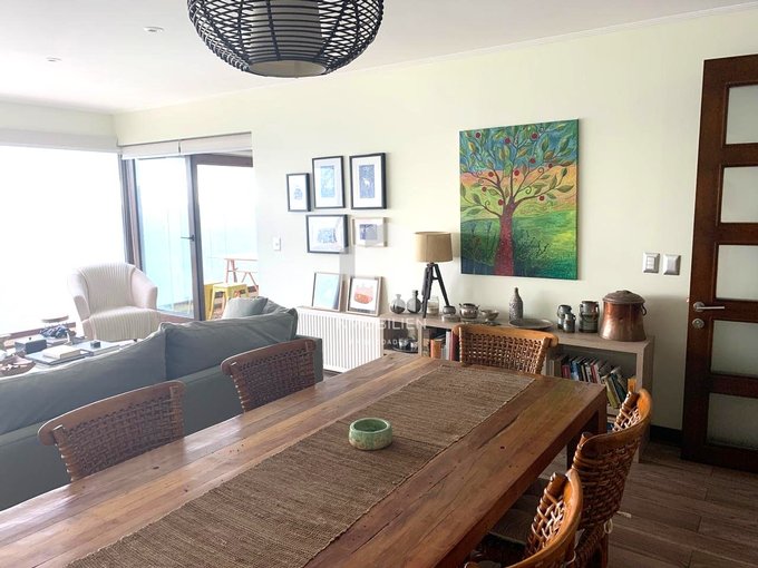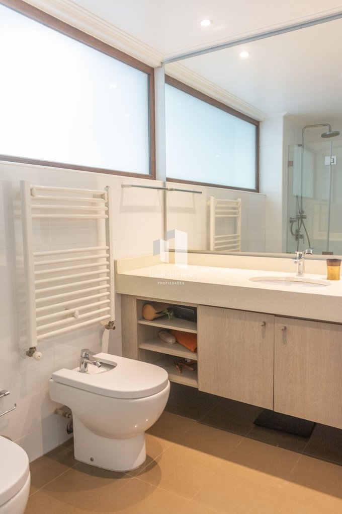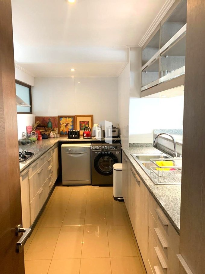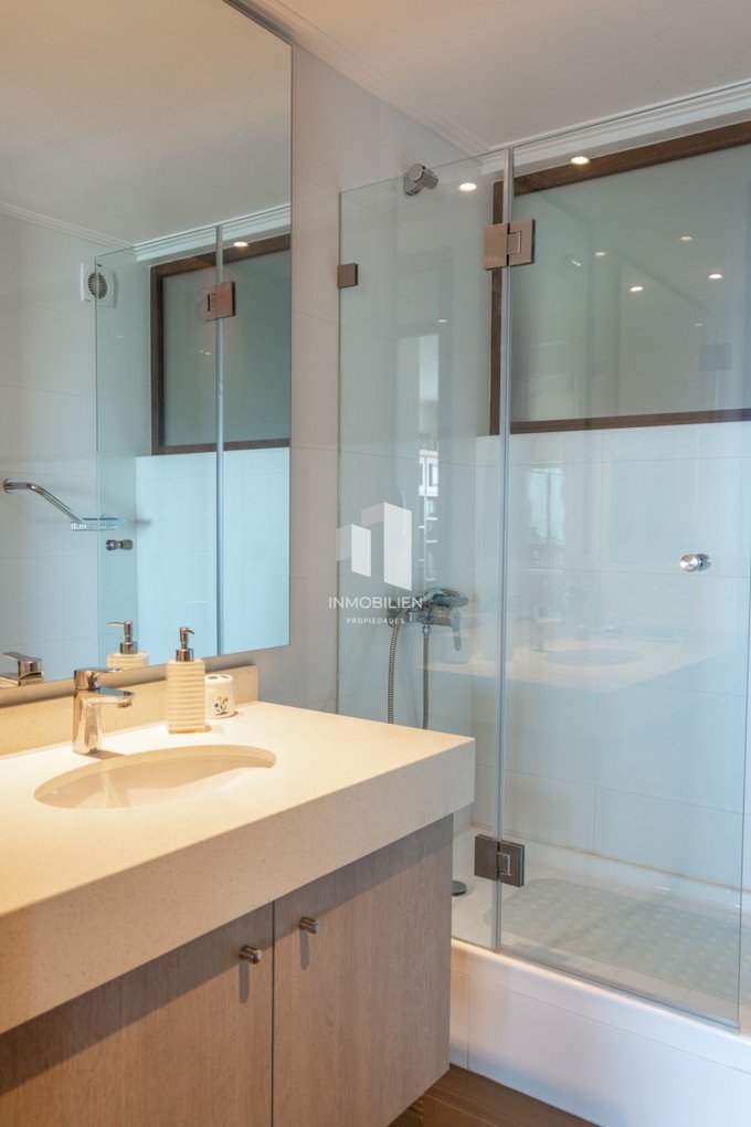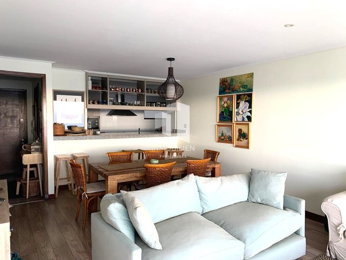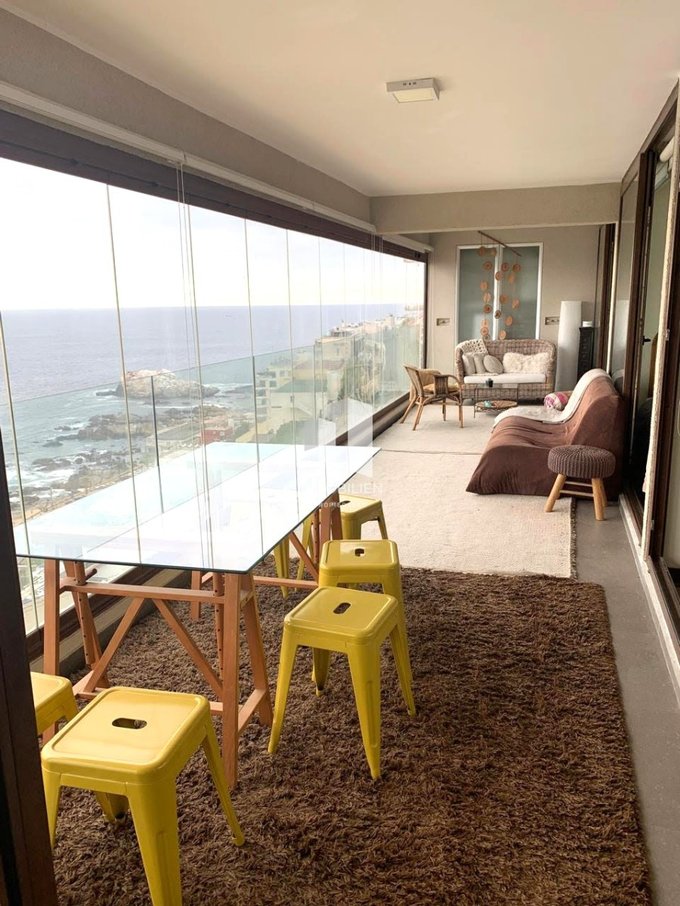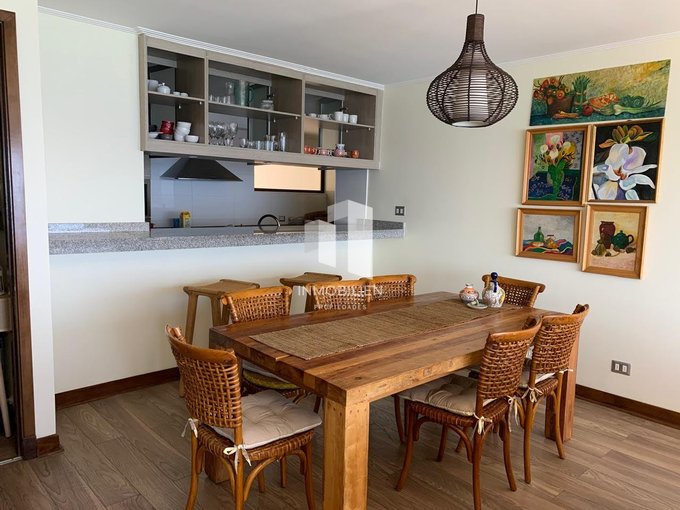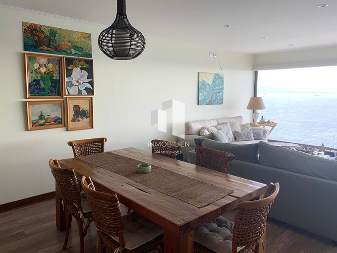 El departamento posee 3 amplios dormitorios, muy cálidos e iluminados, todos con acceso a la terraza y vista al mar, principal en suite, 3 baños, gran living comedor, una cómoda cocina tradicional integrada, desde donde también podrás apreciar despejada vista al mar, con espacios para lavadora y lavavajillas, muebles con finas terminaciones y cubierta de granito, combinación de pisos flotantes y porcelanato.