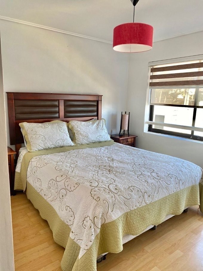 Departamento en Reñaca / Jardín del Mar, sector Unimarc, living comedor con orientación Sur y dormitorios orientados uno al oriente y el otro al poniente. El departamento tiene living comedor, cocina americana, dos dormitorios amplios con clóset y cada uno con su baño privado (dormitorios en suite) Estacionamiento techado. Cocina con salida a una logia. Bodega