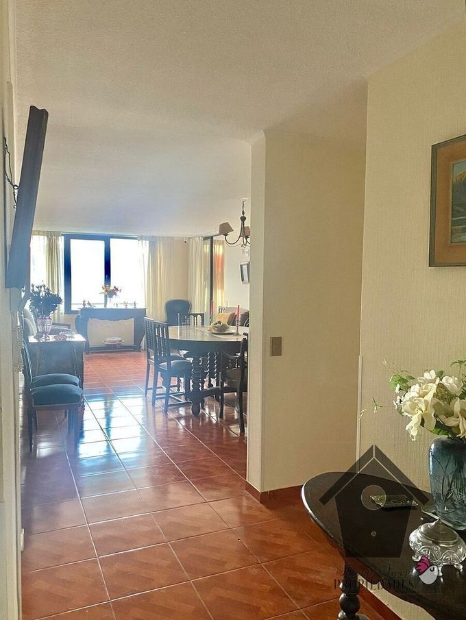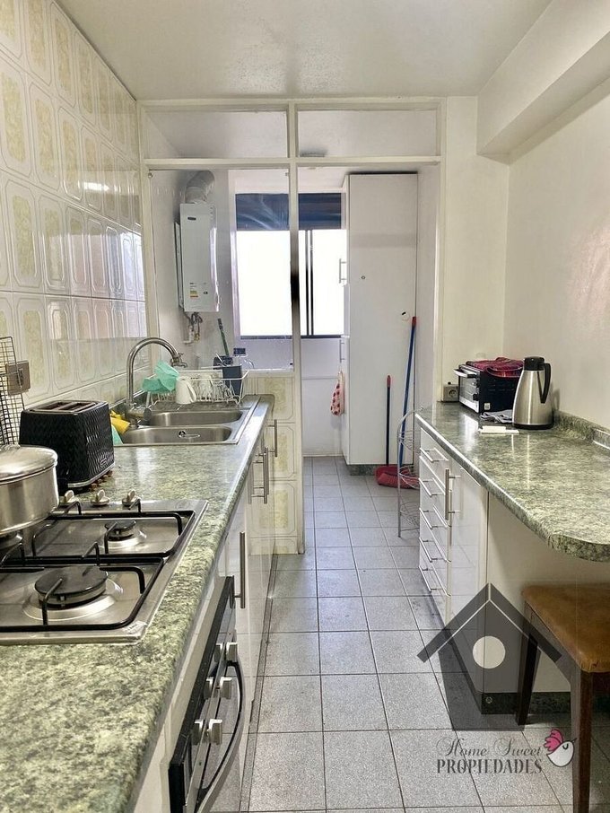 Cerámica ad-oc en living comedor, pasillos, dormitorio principal, baños cocina y terraza. Piso flotante en dormitorios simples. Ventanas con termopanel y marcos de PVC folio Madera. Terraza cerrada habitable. Baño suite con ventana, baño común ventilado por shaft. Cocina amoblada y equipada con encimera a gas con cuatro platos y horno eléctrico empotrado. Agua caliente con cálefon. Bodega equipada con repisas.