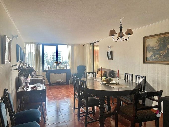 Amplio departamento en el centro de Viña del Mar en piso ocho a una cuadra de la Parroquia de Viña del Mar con Orientación Nor Oriente (Sol por la mañana y parte de la tarde). Tiene un hall de acceso, amplio living comedor, un dormitorio principal con baño en suite y salida a la terraza, dos dormitorios simples uno de ellos con walk in closet y un baño común completo (en total tres dormitorios y dos baños) Además una cocina tradicional con logia. Departamento con estacionamiento subterráneo doble en tándem de 25 m2 y una bodega de 4 m2.