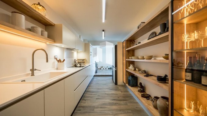 Posee un confortable living comedor con salida a gran terraza, donde podrás disfrutar de una increíble vista. Estupenda cocina, perfecta para disfrutar de cocinar en familia o con amigos, adicionalmente cuenta con una espaciosa y muy cómoda logia, muebles con cubierta de Silestone blanco de alta gama, cajones con correderas, todos los artefactos de cocina son italianos y de alto estándar, puertas lacadas que le brindan un diseño pulido y moderno, vitrinas de vidrio con luz de contacto que añaden un estilo único y funcionalidad al espacio, pisos de porcelanato de la mejor calidad, calefacción por losa radiante que te brindará una agradable y uniforme temperatura.