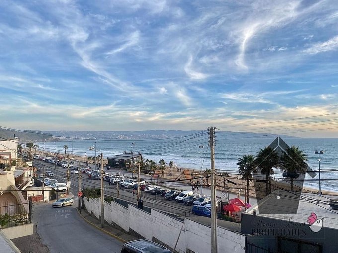 La espectacular vista y ubicación para este amplio departamento en el quinto sector de Reñaca. Sin pago de gastos comunes el departamento es una excelente oportunidad de inversión ya sea para usar como vivienda principal, como segunda vivienda o también para arrendar a turistas o vacacionistas. A pasos de la playa, el depto tiene una amplia terraza a la que se accede desde el living comedor y los dos dormitorios principales. El área privada incluye un baño común y sendos closet en el pasillo de distribución. El área de servicios incluye una cocina muy iluminada, un baño y un dormitorio. La entrada al departamento incluye jardineras las que conforman un pequeño jardín. El departamento incluye un estacionamiento techado de 17 m y un estacionamiento exterior.