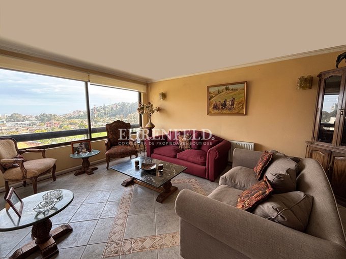Gran departamento dúplex, vista al mar, ubicado en tradicional barrio de Jardín del Mar, Reñaca, Viña del Mar. A pasos de Colegio Mackay, comercio en general y transporte público. Cercano a playa Reñaca y destinos turísticos de la zona.