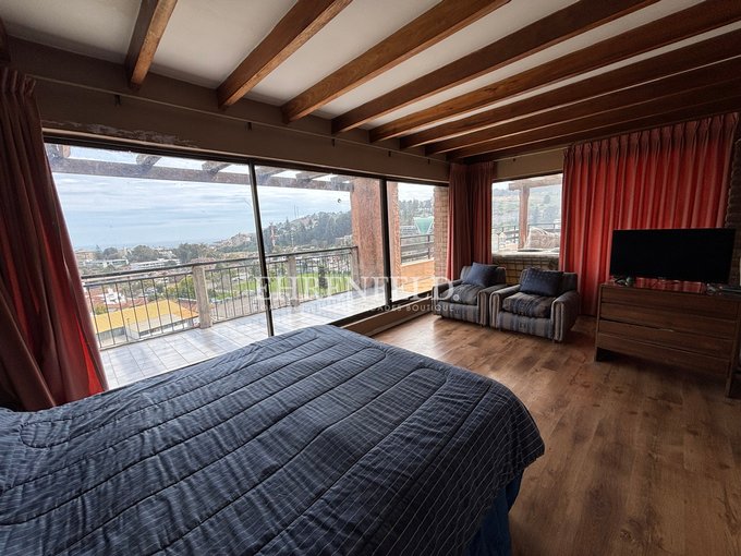 2 dormitorios, uno que es el dormitorio principal y el otro es un quinto dormitorio o escritorio. El dormitorio principal tiene salida a gran terraza con vista al mar.