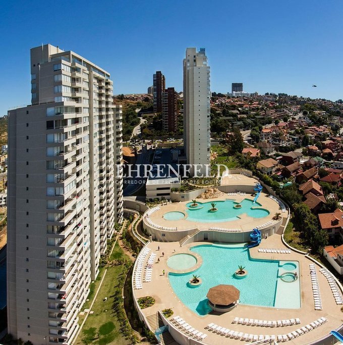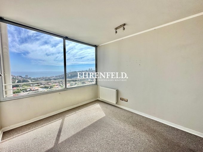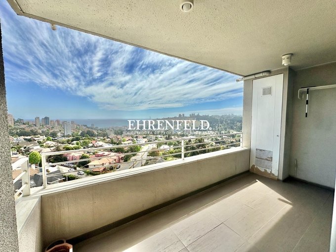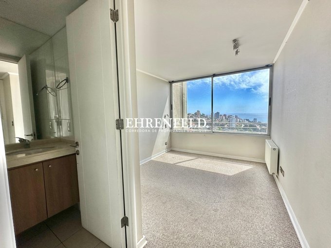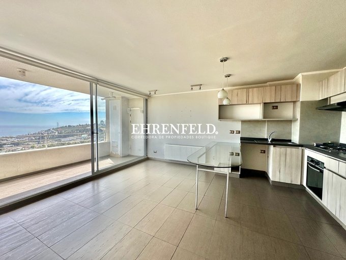 Departamento de 2 dormitorios y 2 baños (uno de ellos en suite), cocina incorporada y equipada, living con salida a terraza abierta con una vista increíble a la bahía de Reñaca.