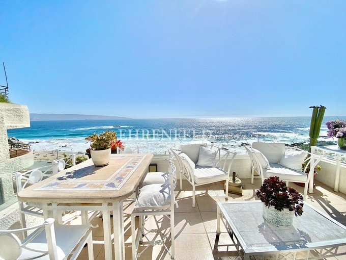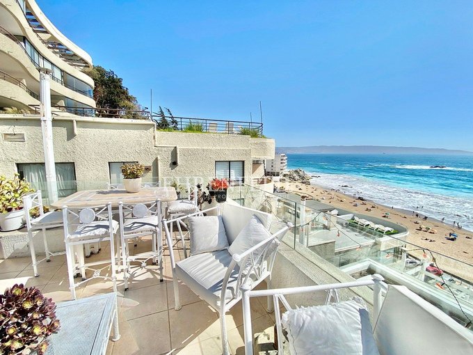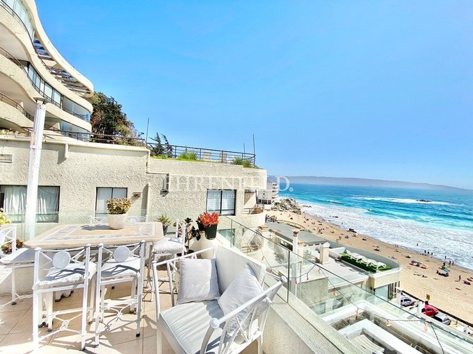 Espectacular departamento en primera línea, hermosa vista al mar, frente a la playa de Reñaca. Cercano a Bancos, supermercados, transporte y comercio en general.