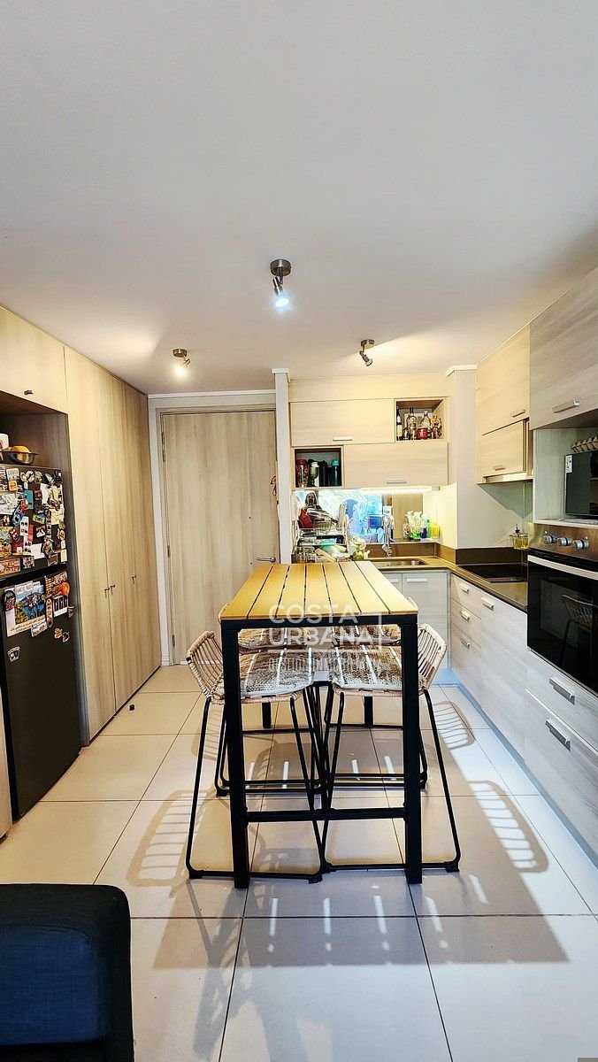 -Cocina abierta, con horno empotrado y cocina eléctrica de vitrocerámica.