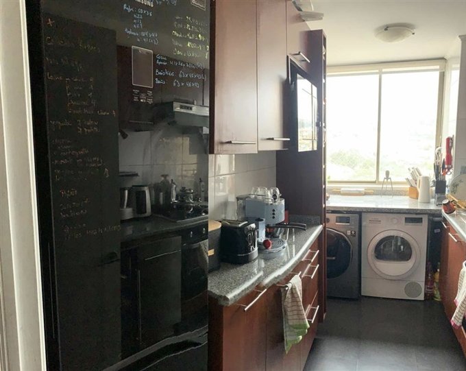 . La Cocina se encuentra totalmente equipada con Campana, Encimera, Horno empotrado, conexión a Lavadora y conexión a Lavavajillas y mesones de granito