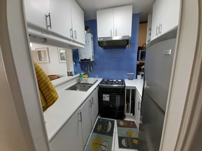 Cocina semi Abierta Amoblada, con Calefont.