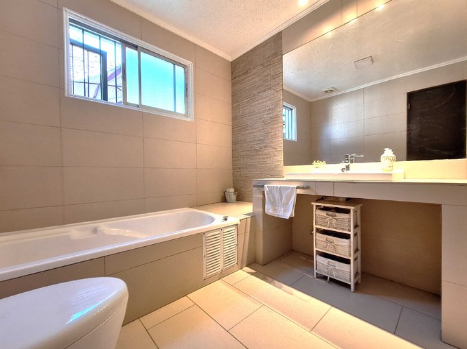 El dormitorio principal es en suite, con un amplio walk-in closet con luz natural. El baño cuenta con luz natural, piso porcelanato, tina con hidromasaje y ducha independiente.