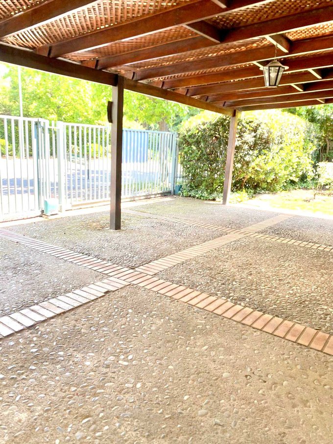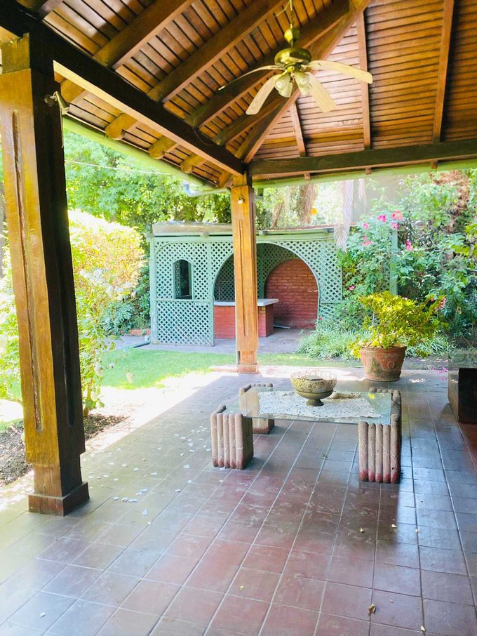 La casa también cuenta con cinco estacionamientos, (dos estacionamientos techados y tres para las visitas) asegurando espacio para todos tus vehículos, y dos prácticas bodegas que te permitirán mantener el orden y la organizació y/o también para hacer una amplicación de la casa. Tiene piscina, quincho, jardín alrededor de toda la casa, incluso árboles frutales.