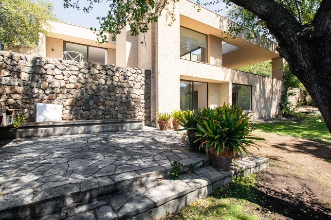 Casa estilo mediterráneo, diseñada por el prestigioso arquitecto José Domingo Peñafiel. Emplazada en un sitio plano, terreno con desniveles, con un jardín espectacular con árboles nativos de más de 100 años, con vista al cerro manquehuito, a la cordillera y panorámica. Lugar muy tranquilo y relajante, orientación nor-oriente.