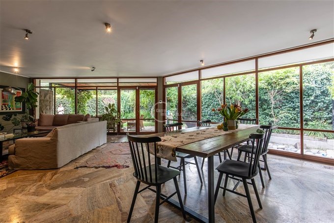 La casa conserva detalles arquitectónicos únicos como sus pisos de mármol, puertas de madera y muros exteriores en piedra, logrando una perfecta combinación entre diseño atemporal y comodidad contemporánea. Un verdadero homenaje a la arquitectura de la época, destacada por la Revista Vivienda y Decoración como Homenaje de los sesentas.