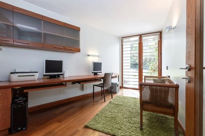 Escritorio, baño de visita, sala de estar, sala de música, sala computadores