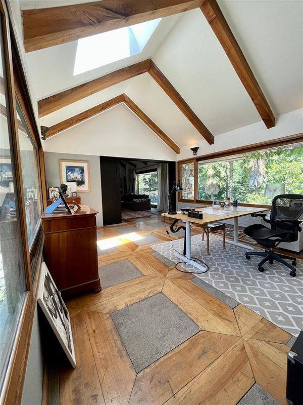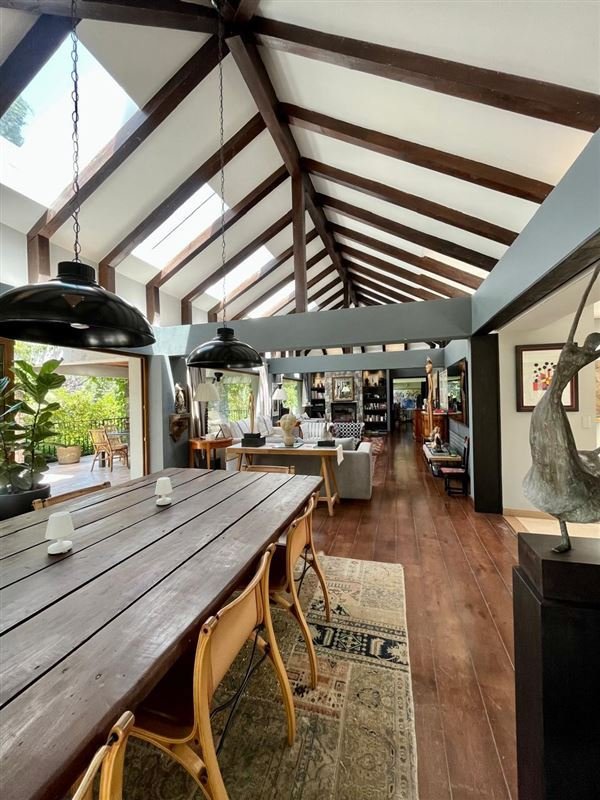 Amplio comedor de diario, estación de café, pieza de planchado y logia iluminadas por lucarnas.