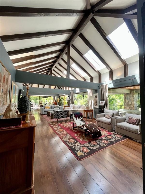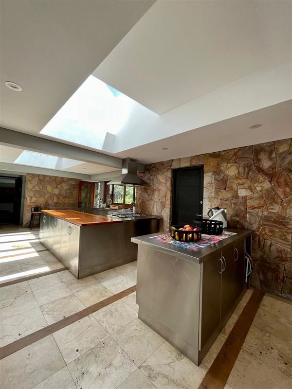 Los espacios interiores son de doble altura, iluminados con lucarnas, las que permiten iluminación natural durante todo el día, con vistas hacia todas las orientaciones. Jardines diseñados por paisajistas, perfectamente mantenidos y cuidados, caminos internos con adoquines, aréa de fogón rodeado por bancas en obra.