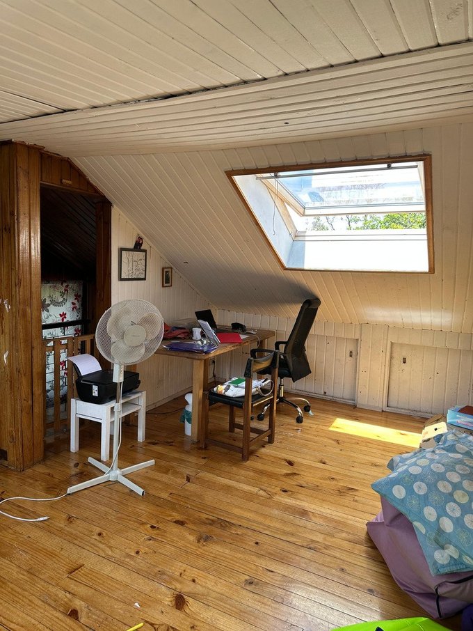 La casa cuenta con piso de parqué, ventanas termopanel, y calefacción por radiadores.