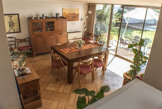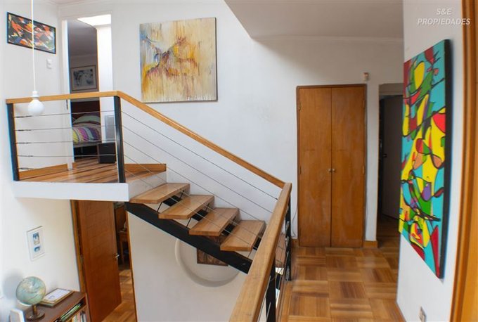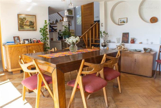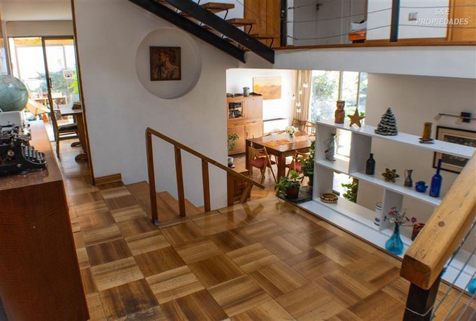 Destaca su imponente hall de acceso de doble altura, que entrega carácter y calidez desde el primer momento, junto a finos detalles como piso de parquet y puerta principal de madera maciza.