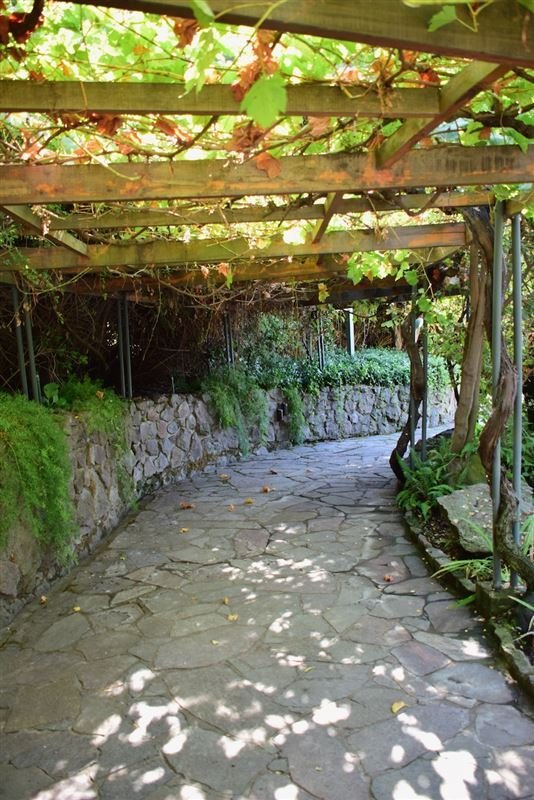 Con muchos senderos de piedra.-