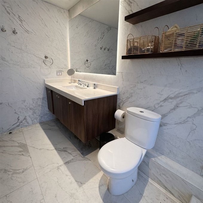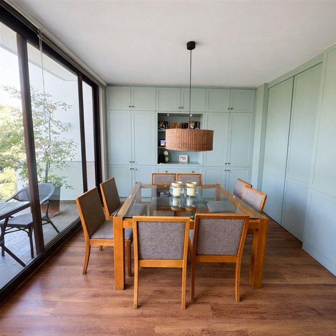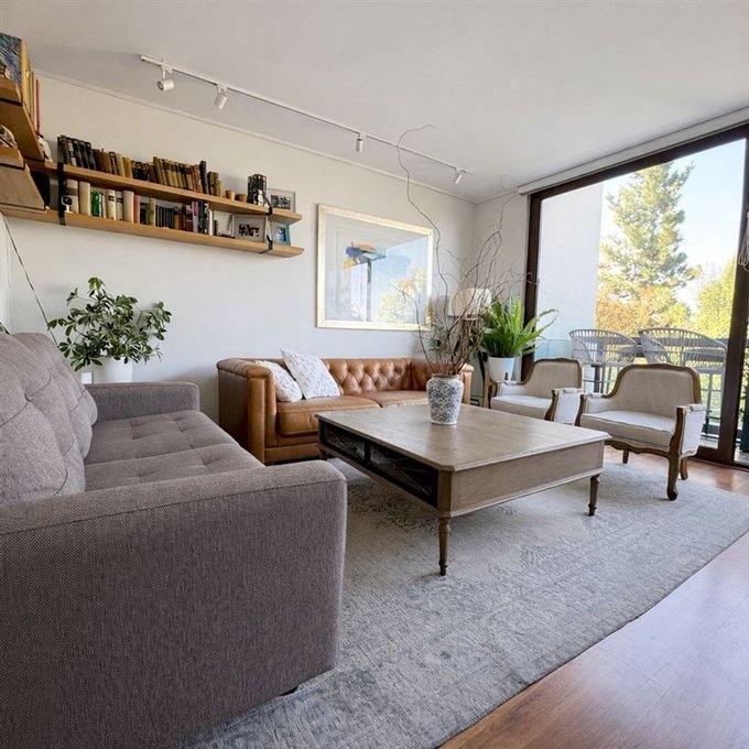 Hall de entrada, amplio living comedor juntos con grandes ventanales y salida a una terraza/balcón con rica vista, baño de visita. Amplia y luminosa cocina de estilo provenzal, completamente remodelada, diseñada para combinar funcionalidad y estética. Los muebles son de alta calidad de madera lacada marca SIME con sistema de cierre suave, lo que aporta comodidad y durabilidad en el uso diario. Destaca su elegante cubierta Silestone, ideal por su resistencia y fácil mantención. Equipada con cocina eléctrica a inducción, campana FDV, lavavajillas y horno empotrada. La cocina esta incorporada al comedor con una puerta corrediza para generar privacidad. Tiene una amplia despensa separada por una puerta
