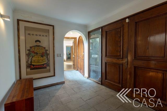 Procasa 64506 Casa ubicada en sector privilegiado de Vitacura en Santa María de Manquehue Cercana a los colegios Huelén y San Benito Hall de entrada Living y comedor con salida a terraza techada 6 Amplios dormitorios 5 Baños Baño de visita Gran cocina Salas de estar y de estudio Estacionamiento para 4 autos 2 Bodegas 377 m2 útiles 838 m2 totales Contribuciones 683.000 aprox Tienes que coordinar una visita